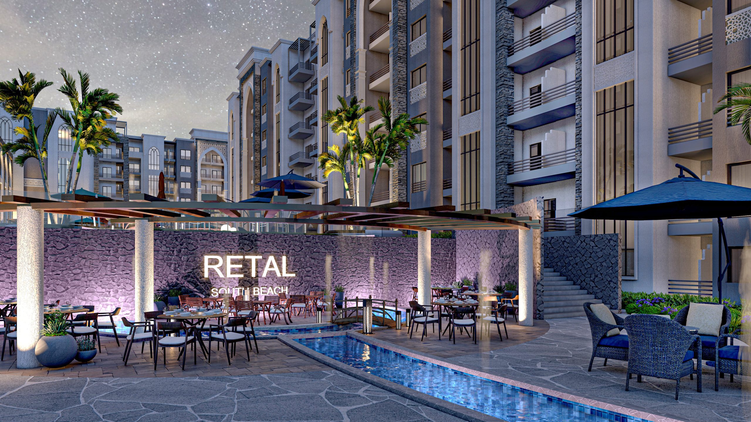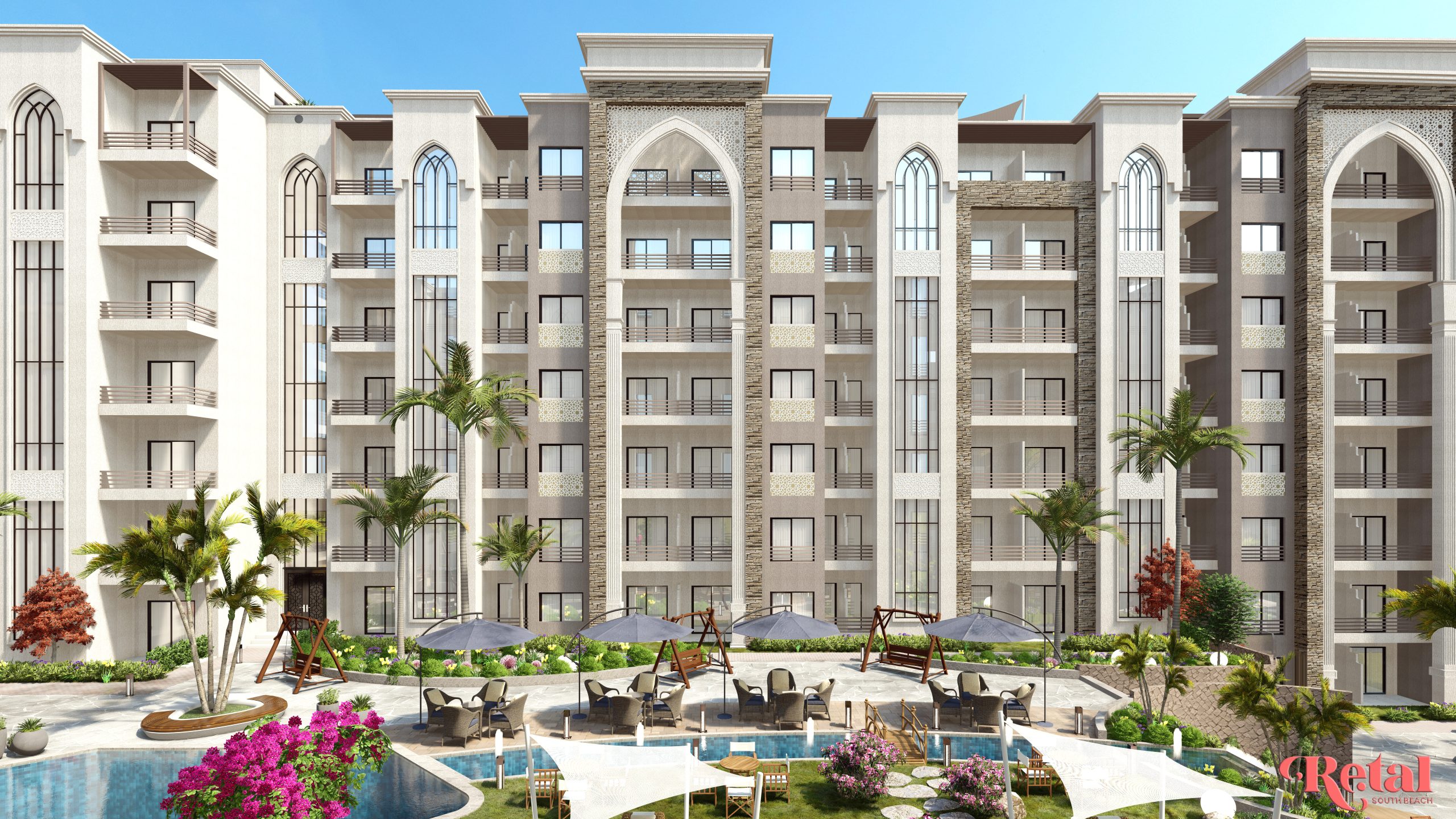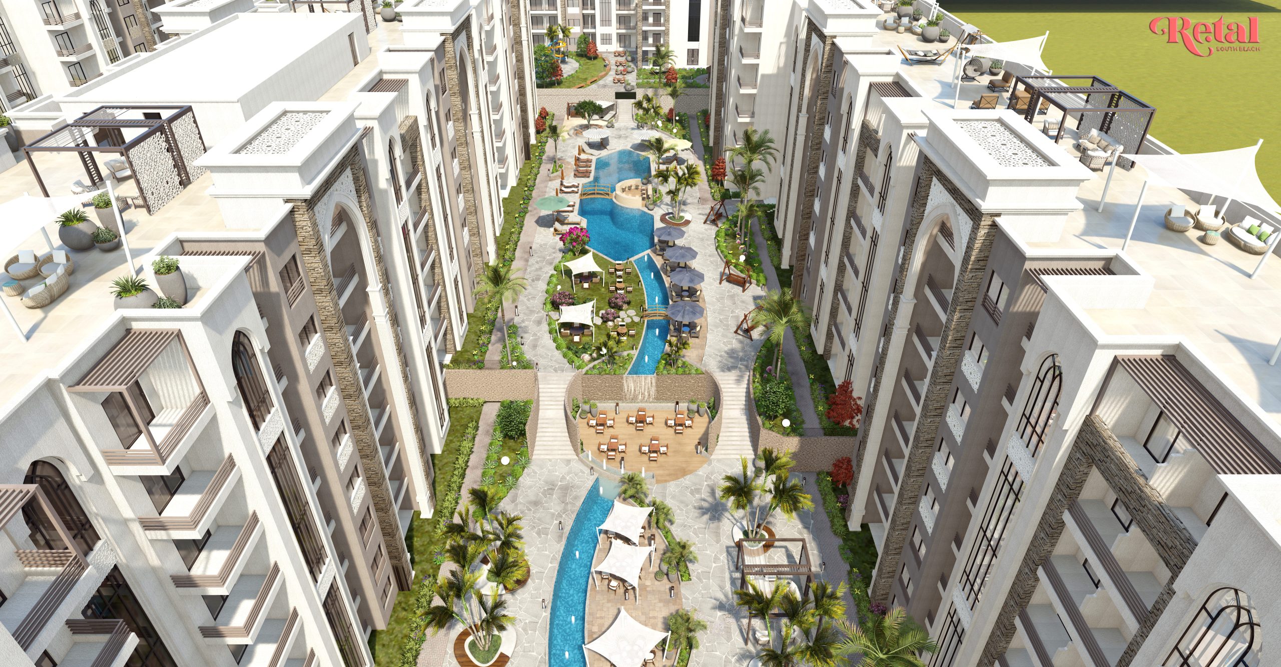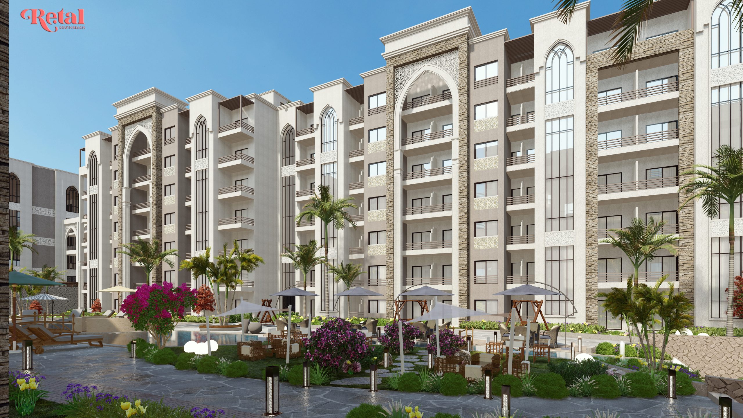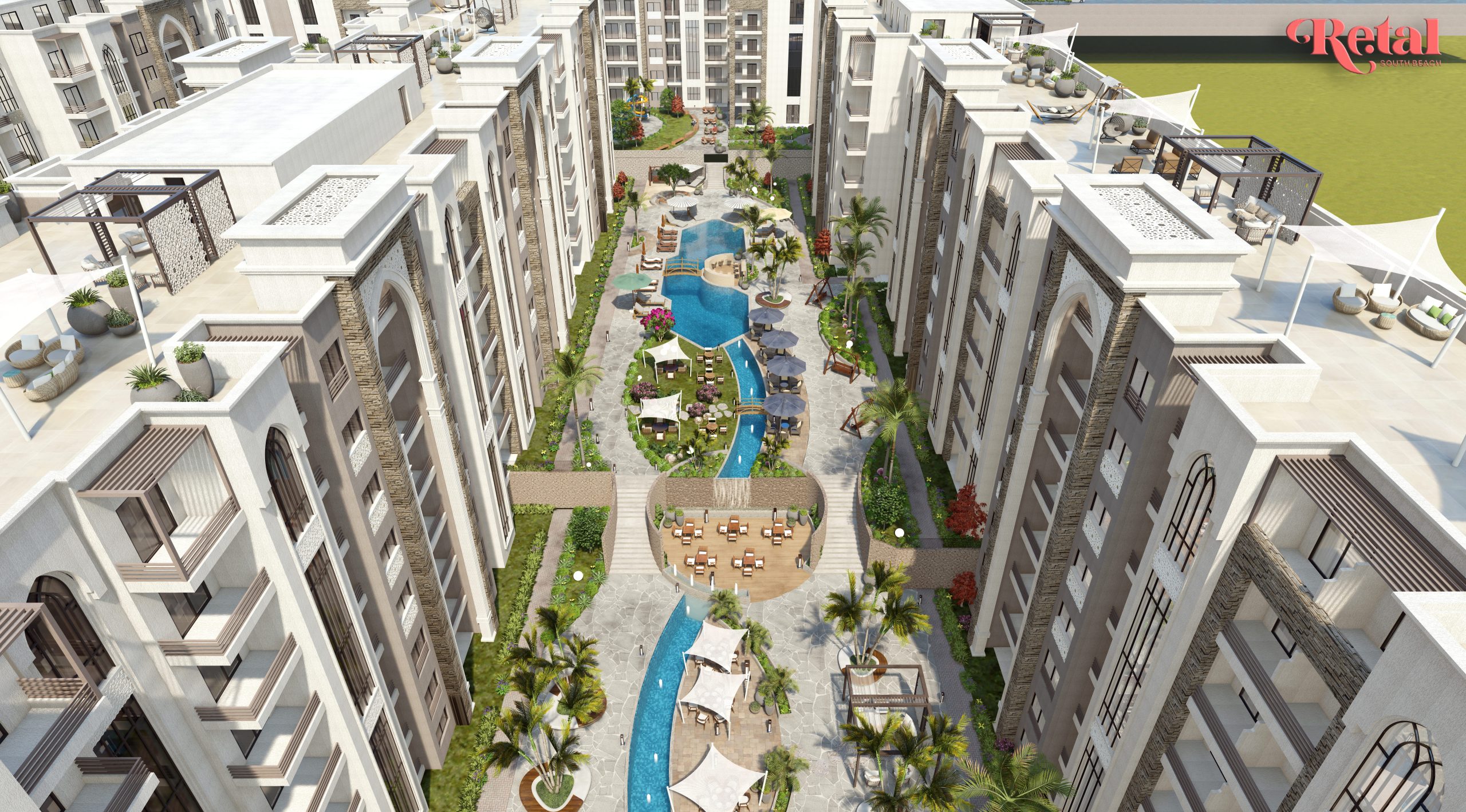 في قلب الساحل الشمالي، وتحديدًا عند الكيلو 77 من طريق الإسكندرية – مطروح، يقع مشروع Retal South Beach ليقدم لك تجربة سكنية وسياحية متميزة ومتكاملة. يمتد المشروع على مساحة واسعة تصل إلى 7 أفدنة، تم استغلالها بطريقة ذكية ومثالية، حيث تم بناؤه على مساحة 40% فقط من الأرض بينما تُرك 60% من المساحة للمساحات الخضراء والمرافق والخدمات، لتمنحك أجواءً من الاسترخاء، الطبيعة، والرفاهية التي تستحقها.